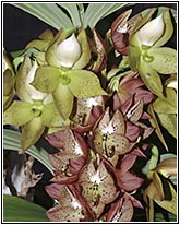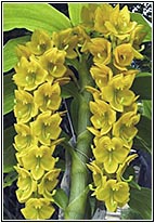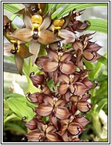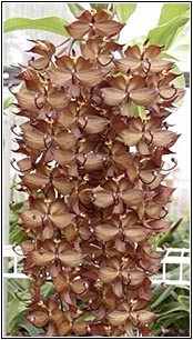 on pendulous inflorescences carrying 15 to 20 flowers. Mature