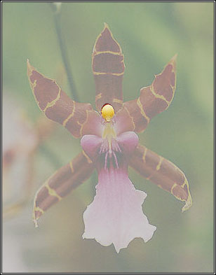 This is the column or gynostemium. It's the fusion of the male portion (stamens) and female portion (stigma). It appears on the center of the flowers, just above the lip, it is at the apex of all six parts. In Cattleya species, the column is big as a pencil and 2,5 cm long. In a slipper orchid is round and flat an is called a staminode. In the majority of orchids the grains of pollen are collected in small masses called pollinia which is located inside the anther that is a "box" where the pollinia are kept and it is located on the tip of the column. The ovary is situated just bellow the anther in a short stem called pedicel. It is not fully developed until the flower is fertilized. |
